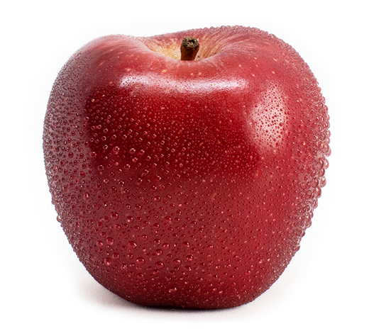 Red delicious, una de sus características principales es su color rojo intenso y su forma de corazón, en ocasiones tiene ligeras rayas. Posee una textura crujiente con un sabor dulce y ligeramente suave, esta sabrosa manzana se destaca en ensaladas frescas y crujientes.